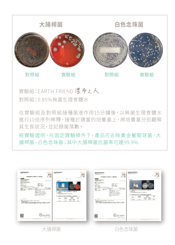 其實漂布之人的應用比你知道的還廣,漂布之人經實驗(抗菌測試 JIS Z 2801)證實可以有效降低黃金葡萄球菌、大腸桿菌、白色念珠菌等。
